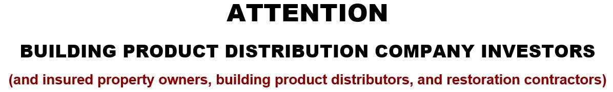 For institutional investors: Although unfamiliar with the realities of the property damage insurance restoration construction market and the multi-billion dollar sales "deficits" that the building product manufacturers and distributors operate under, without proper due diligence, institutional investors readily buy into the promises made by building product manufacturing and distribution company M&A leadership of great things to come as they invest billions of dollars into acquiring typically smaller but related companies. While those acquisitions may increase the size of a company's footprint, it does nothing however to solve the problem of recapturing the billions of dollars-worth of annually missed building product sales which, when recaptured, would contribute mightily to helping investors to achieve true maximum ROI. Until then, however...